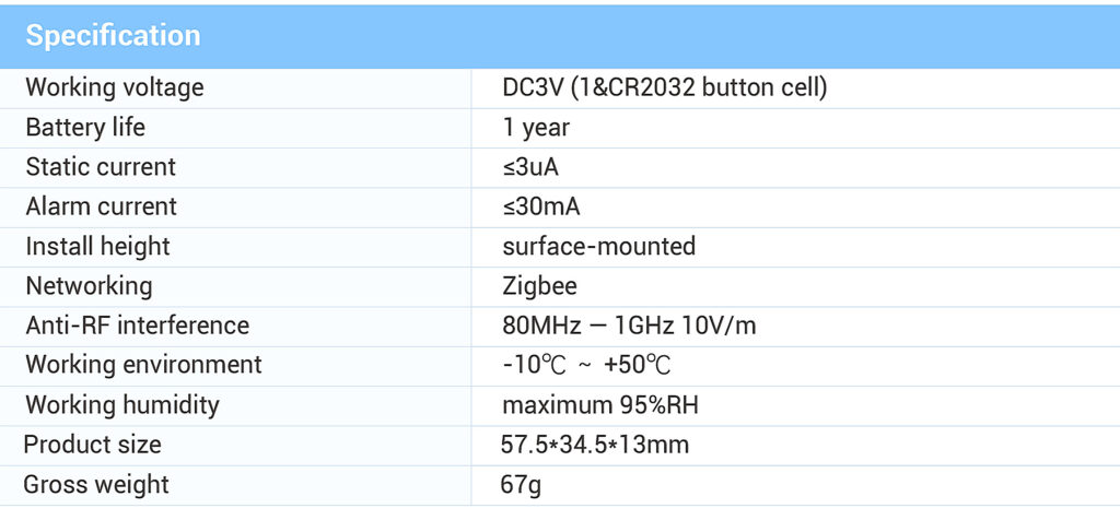 Тревожная кнопка - Посылает сигнал тревоги, когда происходит чрезвычайная ситуация. - Поддержка управления автоматизацией. - Расстояние беспроводной связи составляет около 70 метров в открытой среде. - Настенный монтаж или установка на шнуре. - Питание от батареи.