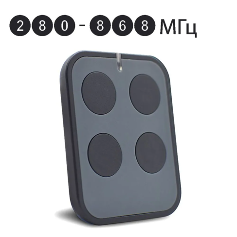 Многочастотный универсальный пульт SMG для ворот, гаража, шлагбаума. Копирует более 50 брендов различных производителей автоматики, работающих в широком диапазоне частот от 280 до 868 МГц. Также для удобства можно одним универсальным пультом заменить до 4-х пультов других брендов на каждую кнопку скопировать свой бренд, в том числе работающие на разных частотах. Универсальный программируемый пульт работает со статическим или динамическим кодом. По сути, это дубликатор кода пультов-оригиналов. С помощью пульта управляют шлагбаумами, гаражными воротами и прочей автоматикой. В состав пульта входит приемник, передатчик, схема памяти и управляющий контроллер. Сигнал от пульта-оригинала, который копируют, приходит в приемник, анализируется контроллером и заносится в энергонезависимую флеш-память. При нажатии соответствующей кнопки на универсальном пульте его воспроизводит передатчик. Внимание! Универсальный программируемый пульт может копировать только пульты, работающие в диапазоне частот от 280 до 868 МГц со статическим или динамическим обучаемым кодом. Пульт не будет копировать сигнал с другой частотой, стелс-коды, зашифрованные коды, коды с двухсторонним обменом (например, автосигнализации).