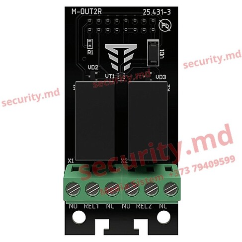 M-OUT2R используется для реализации базовой автоматики: управления электрозамком, электроклапаном водоснабжения. Устанавливается на плату в универсальный слот ППК Orion NOVA, и модули расширения M-ZP sBox, M-ZP mBox и модуль расширения AM-Multi+, работающий в системе адресной противопожарной сигнализации Tiras PRIME A. Имеет два релейных выхода для управления как постоянным да и переменным током. Быстрая и легкая установка Модуль интеграции M-OUT2R устанавливается в универсальный слот на плате ППК, достаточно просто снять верхнюю крышку корпуса и установить модуль, совместимый со всей линейкой ППК серии «Orion NOVA» Технические параметры: СОВМЕСТИМОСТЬ Orion NOVA L Orion NOVA M Orion NOVA S Orion NOVA XS M-ZP sBox M-ZP mBox AM-Multi+ ВЫХОДЫ Два релейных выхода 10А/42В (AC), 5А/30В (DC) ПИТАНИЕ: От ППК все реле модуля деактивированы: 30 мА все реле модуля активированы: 100 мА Габаритные размеры: 35х64х22 мм Масса: 120 г Степень защиты корпуса: IP30 Диапазон рабочих температур: от -10°C до +40°C