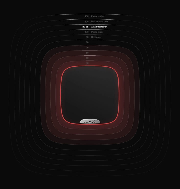 Гибкие настройки делают StreetSiren DoubleDeck уместной и в тихом коттеджном городке, и в шумной промзоне. При тревоге зуммер может работать от 3 до 180 секунд с мощностью от 85 до 113 дБ. Либо не задействоваться вовсе — есть режим световой тревоги. Через приложение легко настроить, какие датчики активируют сирену. И исключить неловкую ситуацию, когда система безопасности оповещает соседей о протечке в стиральной машине.
