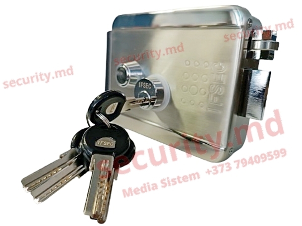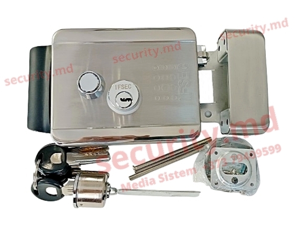 IFSEC LOCK SS Lacăt universal cu lacăt electromecanic din oțel inoxidabil pentru pentru instalare în interior sau în exterior. Potrivit pentru uși metalice sau din lemn. Tip de instalare în direcția de închidere a ușii: stânga/dreapta. Acționat electric cu un impuls de energie electrică (9 - 12V), sau cu o cheie, sau cu ajutorul unui buton mecanic integrat. Sunt incluse 5 chei.