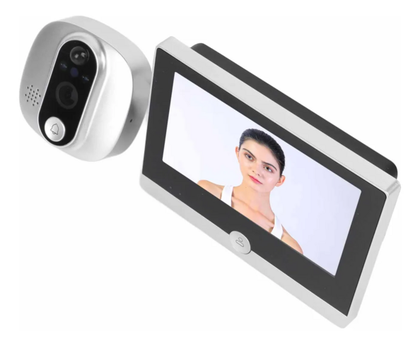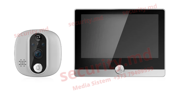 Design compact și instalare ușoară Ecran IPS de 4,3 inchi 2 megapixeli, unghi larg de vizualizare de 167° Suportă conexiune Wi-Fi 2.4G Suportă detectarea mișcării PIR, Alarmă push către telefonul mobil. Control prin aplicația Tuya, suportă vizualizarea video mobilă și funcția de intercom. Interfon bidirecțional de înaltă calitate cu anulare a zgomotului. Suportă card Micro SD de până la 128 GB cu stocare în cloud. Design baterie: poate fi încărcat direct cu USB Baterie încorporată 5000mAh, standby stabil timp de 6 luni. Grosimea ușii aplicabile 35 ~ 120mm. Ecran IPS de 4,3 inchi Wi-Fi 2.4GHz, IEEE 802.11 b \ n Baterie 5000mAh Detectarea mișcării Setarea sensibilității PIR, sensibilitate ridicată (1S)/ medie (în 5S)/ scăzută (în 7s) Alimentare: 5V/2A Dimensiunea produsului: 163*115*70mm Partea senzorului exterior senzor CMOS 1080P Viziune nocturnă: LED infraroșu * 2 buc, distanță 3~5 metri.